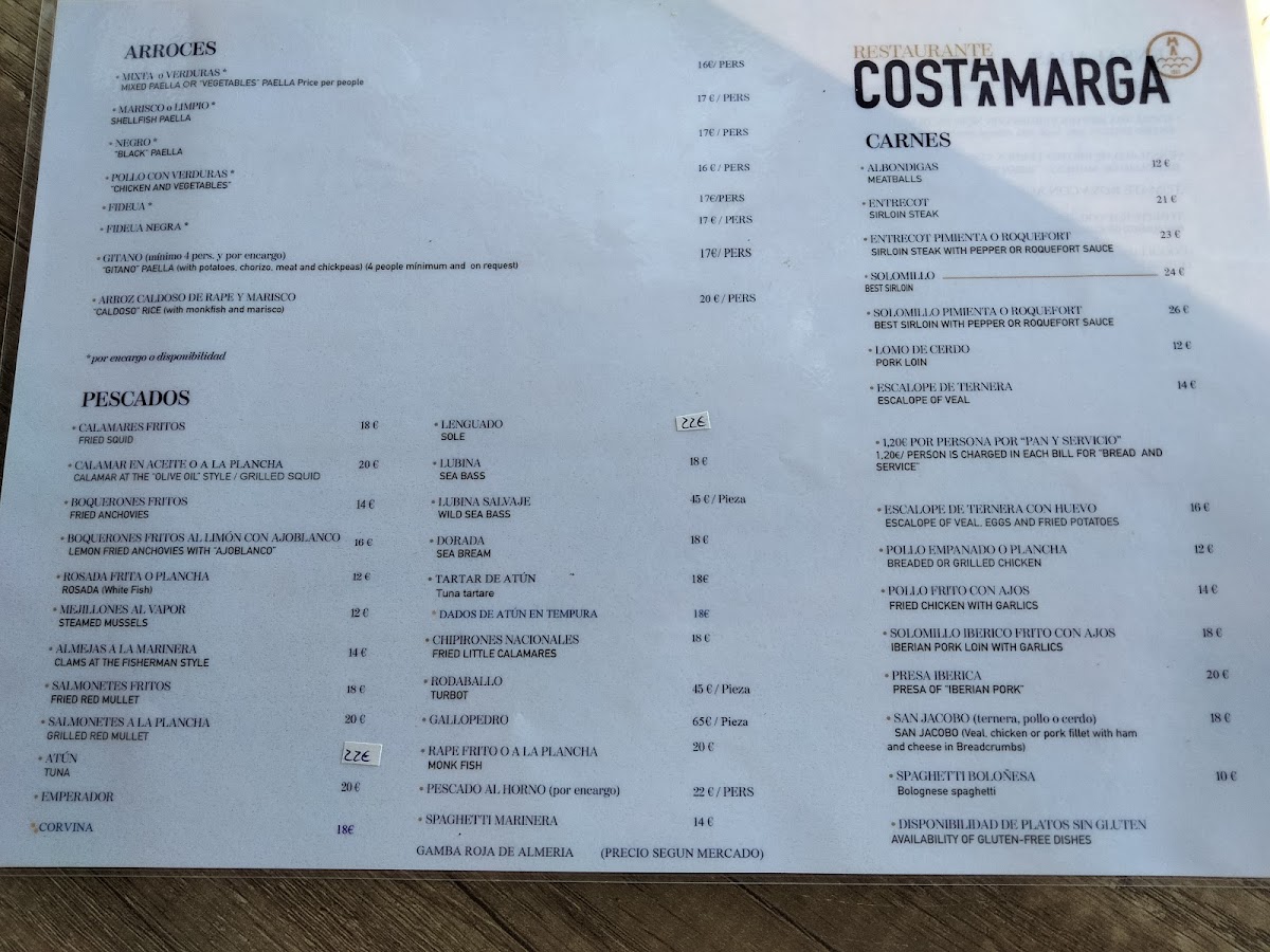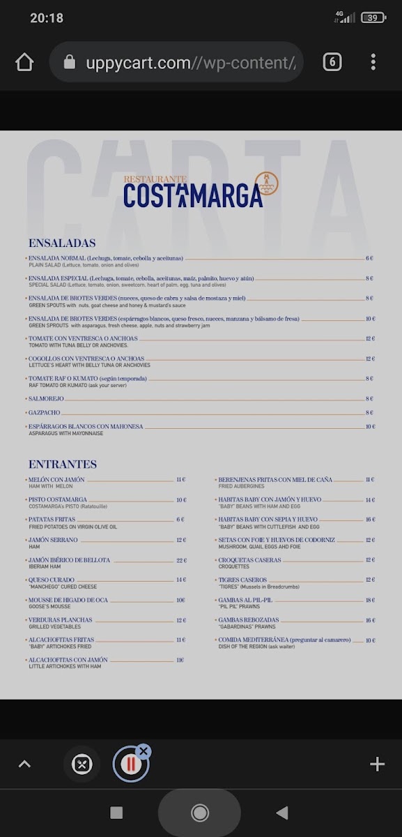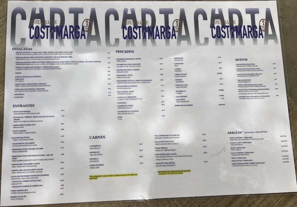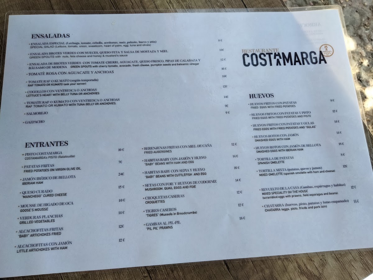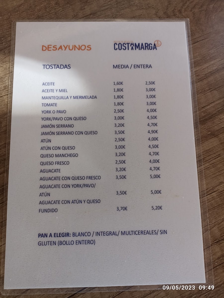Costamarga Menu